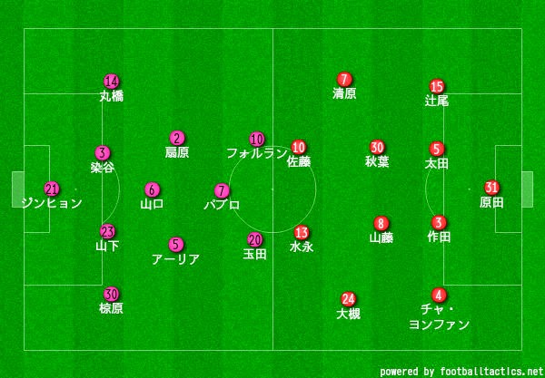 | 野垣内→遠藤(72') 益山→レオミネイロ(80') | 交代 | 玉田→茂庭(70') 長谷川→橋本(90'+4) |